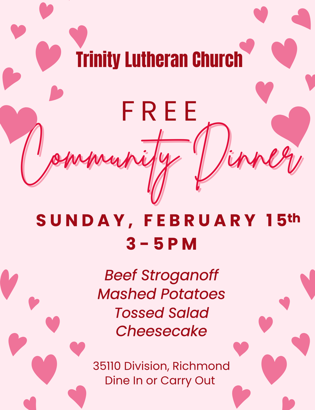 Join us for a delicous dinner in the company of our community!